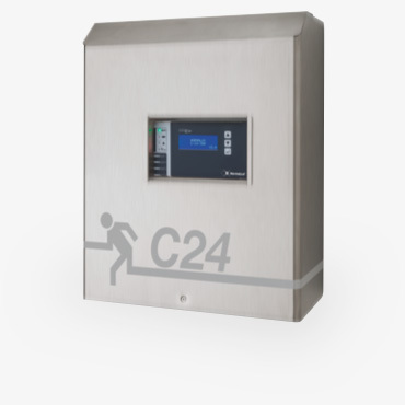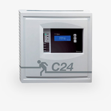 A C24 család lehetővé teszi központi akkumulátorról kezelni a biztonsági és kijáratmutató lámpákat 24V DC segítségével
