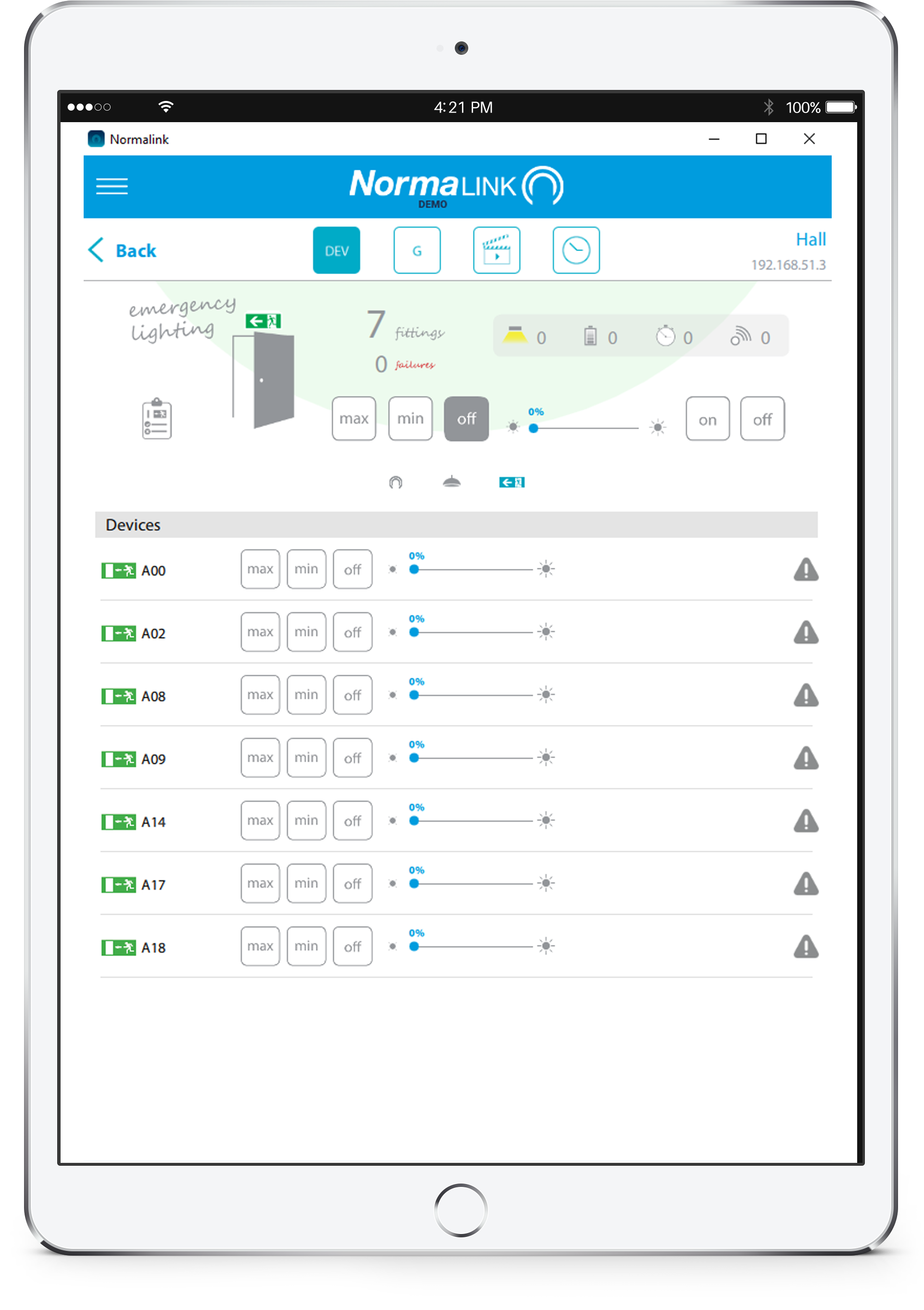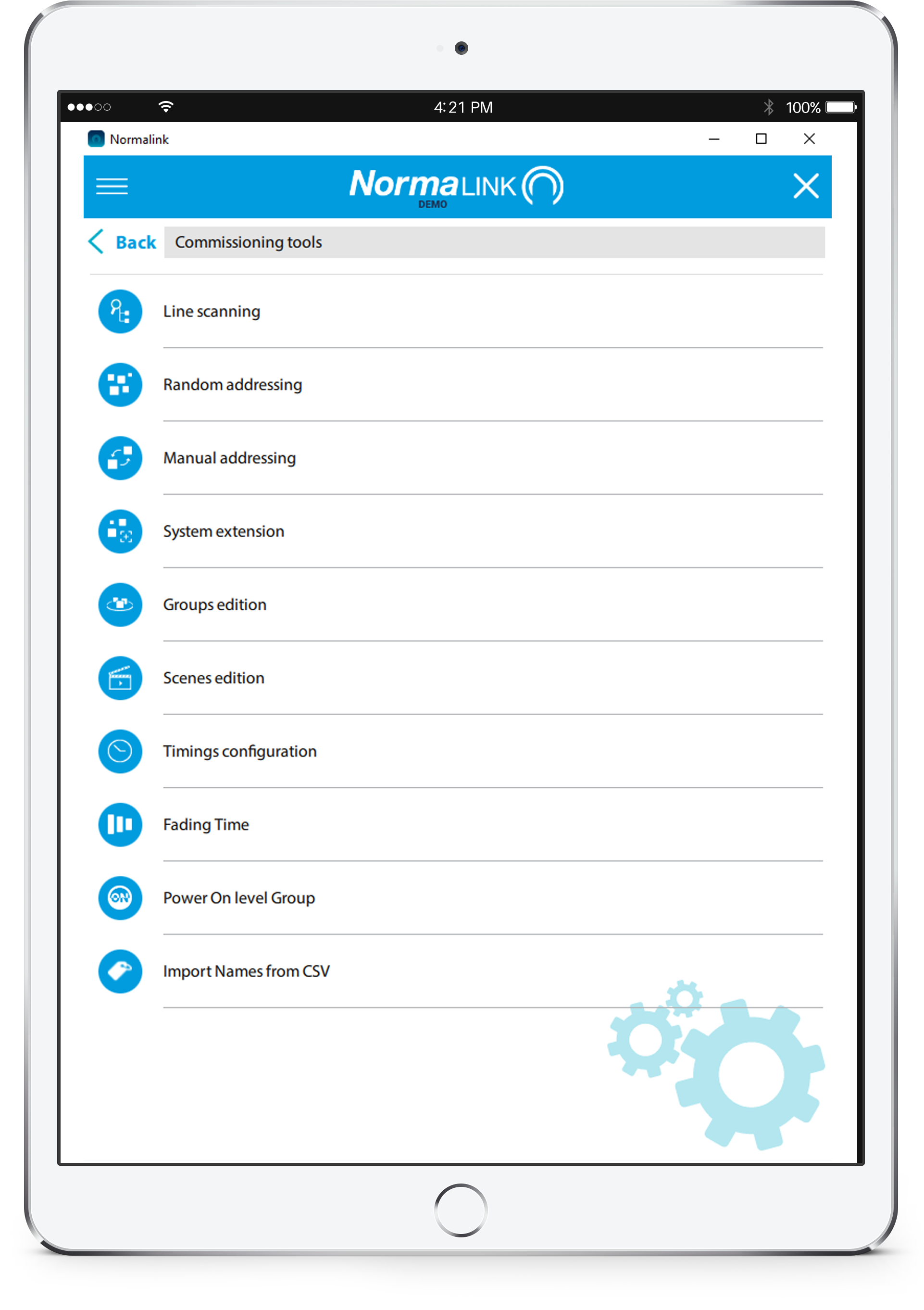 A Normalink egy DALI kompatibilis rendszer és lehetővé teszi egy vagy több telepítés egyidejű távoli vezérlését, valós időben és különböző eszközökről egyidejűleg. Lehetőség van egy átfogó vezérlésre is rajzokkal a Normalink BMS segítségével.