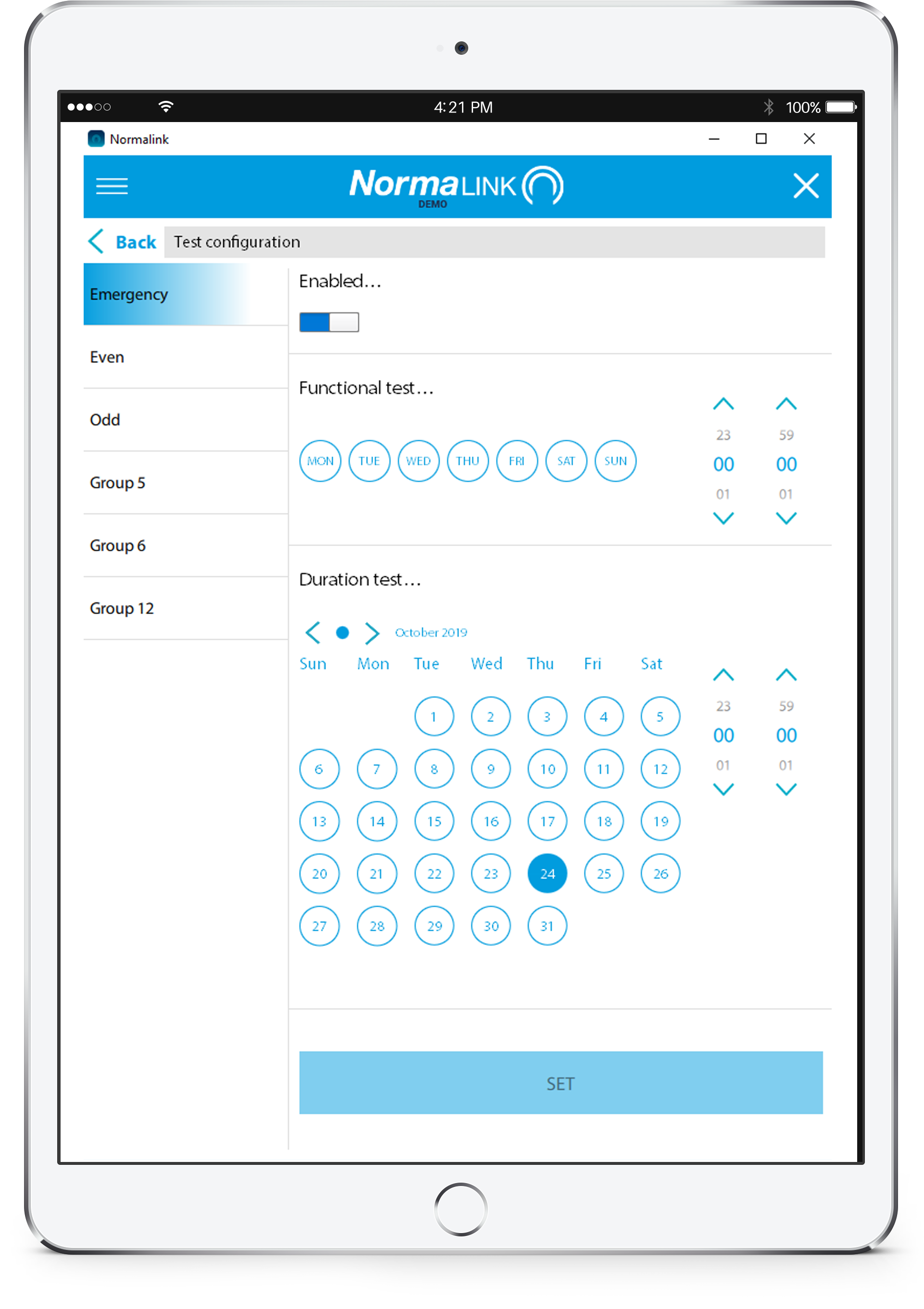– Biztonsági világítás tesztjeinek végrehajtása tetszés szerinti időben